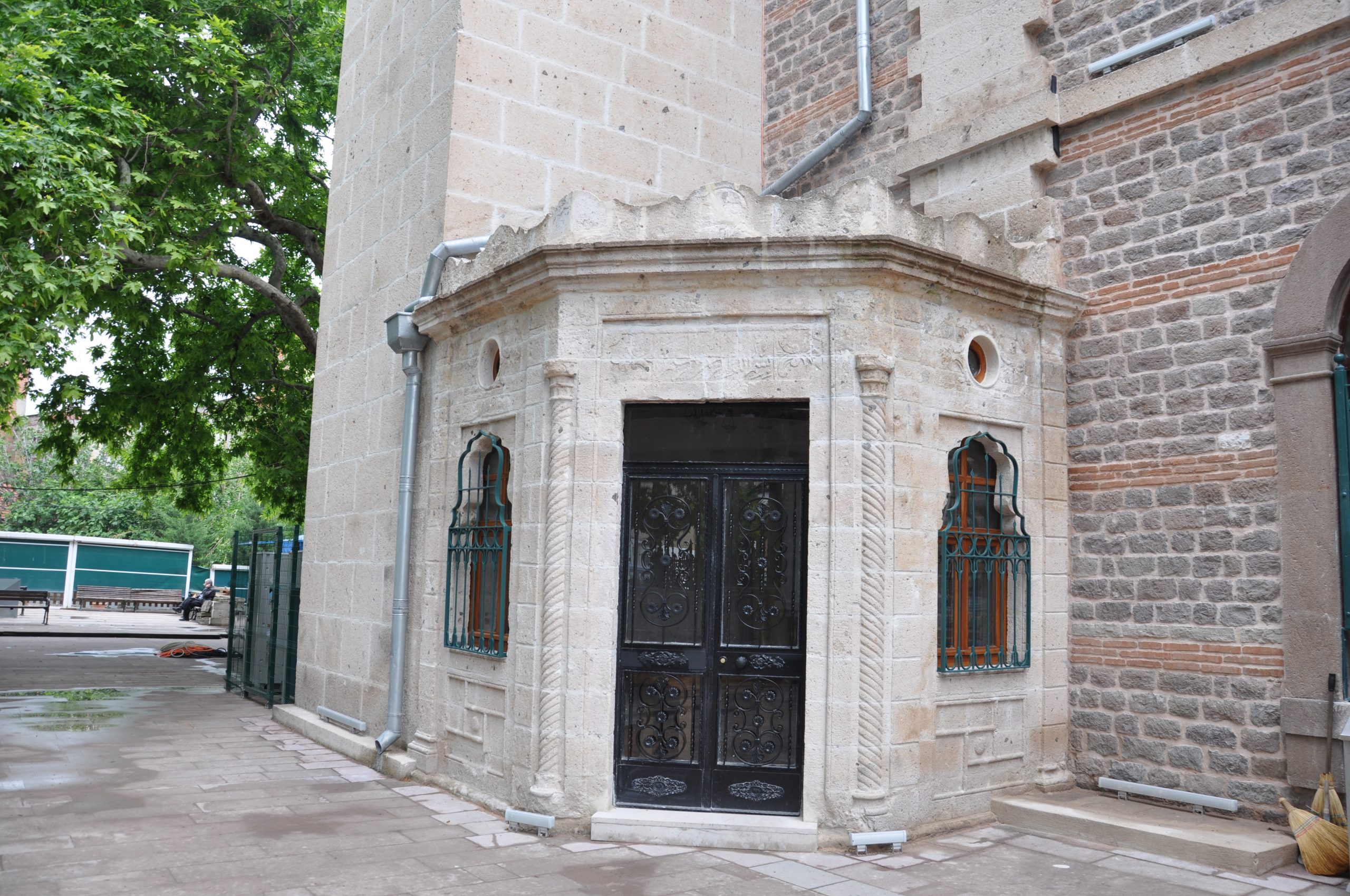 Batıda, minare kaidesinin hemen yanında muvakkithane yer almaktadır. Kesme taştan yapılmıştır. Caminin avlusunda, biri kuzeyde, diğeri batıda olmak üzere iki şadırvan bulunmaktadır. Kuzeydeki şadırvan on iki köşelidir. Mermer şadırvanın içi Paşa hamamından gelen su ile doludur. Ortasında mermerden, dilimli fıskiyesi vardır. Son yıllarda şadırvanın üstü beş sade sütuna oturan bir kubbe ile örtülmüştür. Diğer şadırvan ise, caminin ikinci kez yapımında yapılmıştır. Biçimi ve örtüsü açısından kuzeydekinin aynıdır. Yalnız musluklu panolarda kabartma süsler vardır ve fıskiyesi farklıdır. Ayrıca caminin dışında, kuzeydoğu köşesinde, mermerden beş yüzlü bir şadırvan daha vardır. Her yüzünde, kemerler ile bağlanmış çift gömme sütunlar bulunmaktadır.