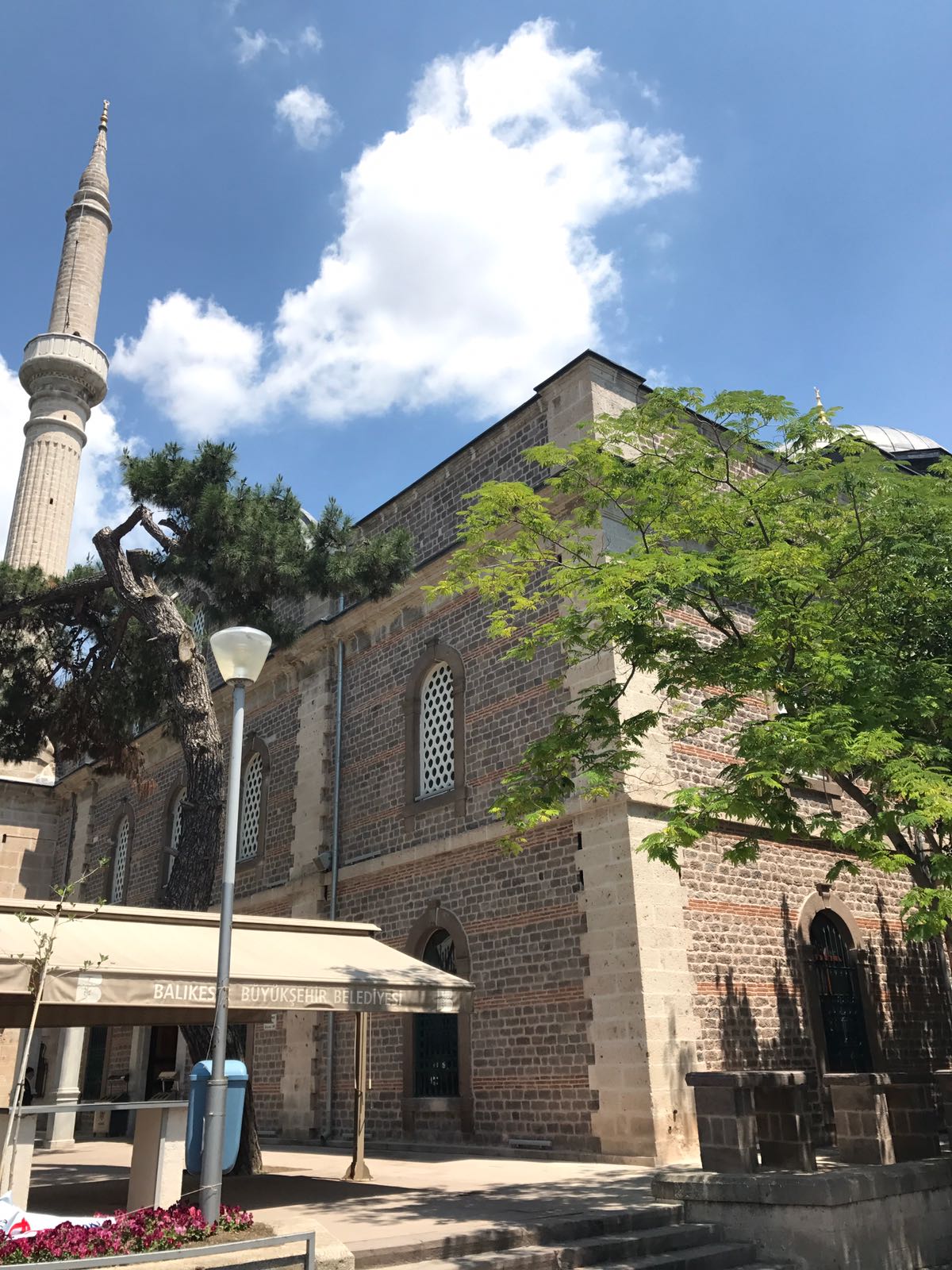 Minare caminin kuzeybatı köşesindedir. Balıkesir eşrafından Arabacıoğulları’ndan Hacı Hafız Efendi yaptırmıştır. Barok üslupta ve kesme taştandır. Merkezi kubbe 1897 depreminde yıkılmış,1902 tarihinde yeniden yapılmıştır. Kapı üzerinde Kelime-i Tevhid Ebced hesabı ile ilk inşaat tarihi olan h. 865 (1464) tarihi okunmaktadır. Cami avlusunda türbe, hazire ve şadırvan bulunmaktadır. 07.02.1923 tarihinde Atatürk bu camide ünlü hutbesini okutmuştur.